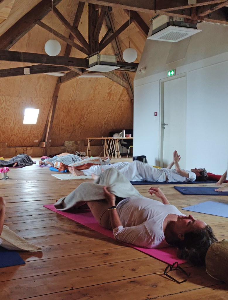 Prévoir une tenue souple, un tapis de sol, un coussin de méditation, une petite couverture.